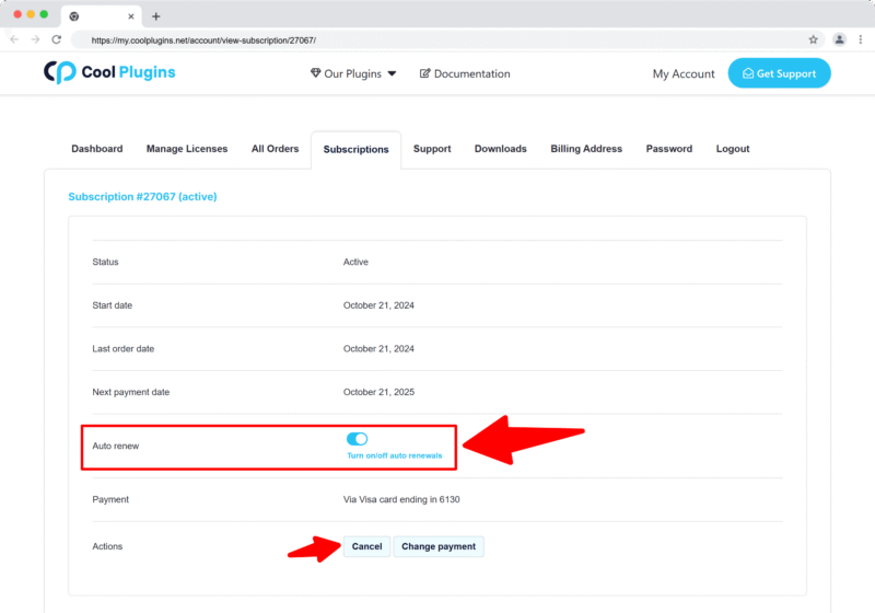 Ans. You can cancel the auto-renewal at any time by logging into your account on our website. Go to the Subscriptions section, find your active license, and click on the Cancel Auto-Renewal button. This will stop future charges, but your license will remain active until the end of the current billing period.