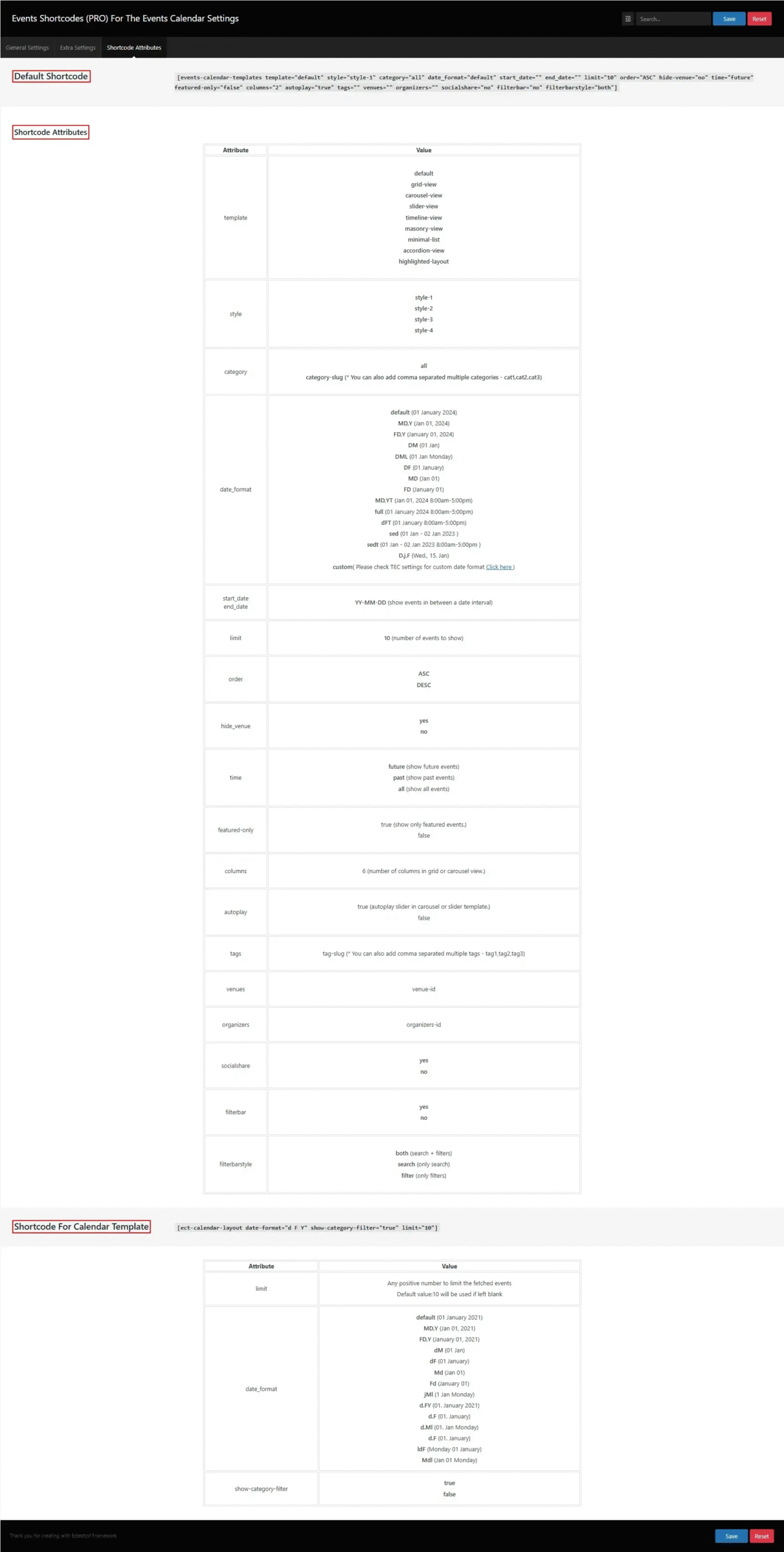 - Shortcode for Calendar Template: To display events in a calendar view, you can use the Calendar Template Shortcode. Simply add it to your page, and it will generate a calendar layout with all your events.